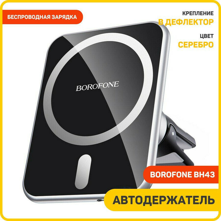 Автомобильный держатель/беспроводное зарядное устройство Borofone BH43 (магнитный / в дефлектор) серебро