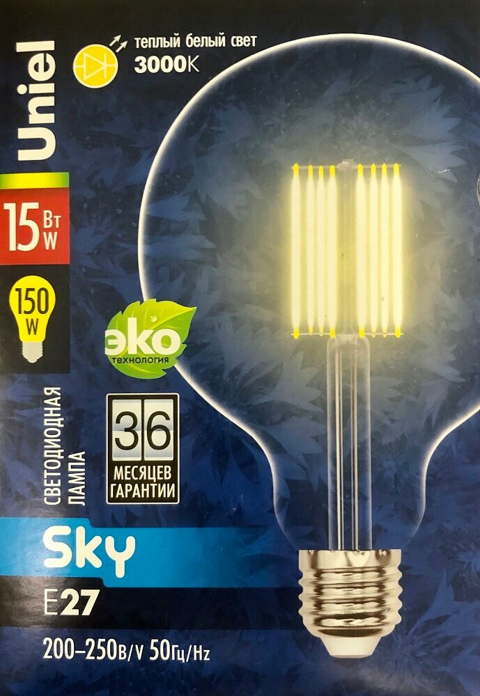 СохранитьUniel Led-g125-15w/3000k/e27/cl Pls02wh Лампа светодиодная. Форма шар, прозрачная. UL-00004860 интересное: