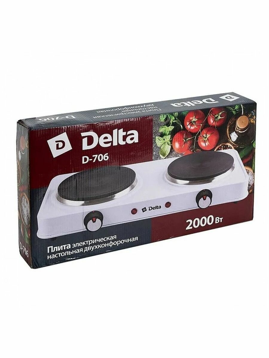 Электрическая плита DELTA D-706, двухконфорочная, 2000 Вт, белая