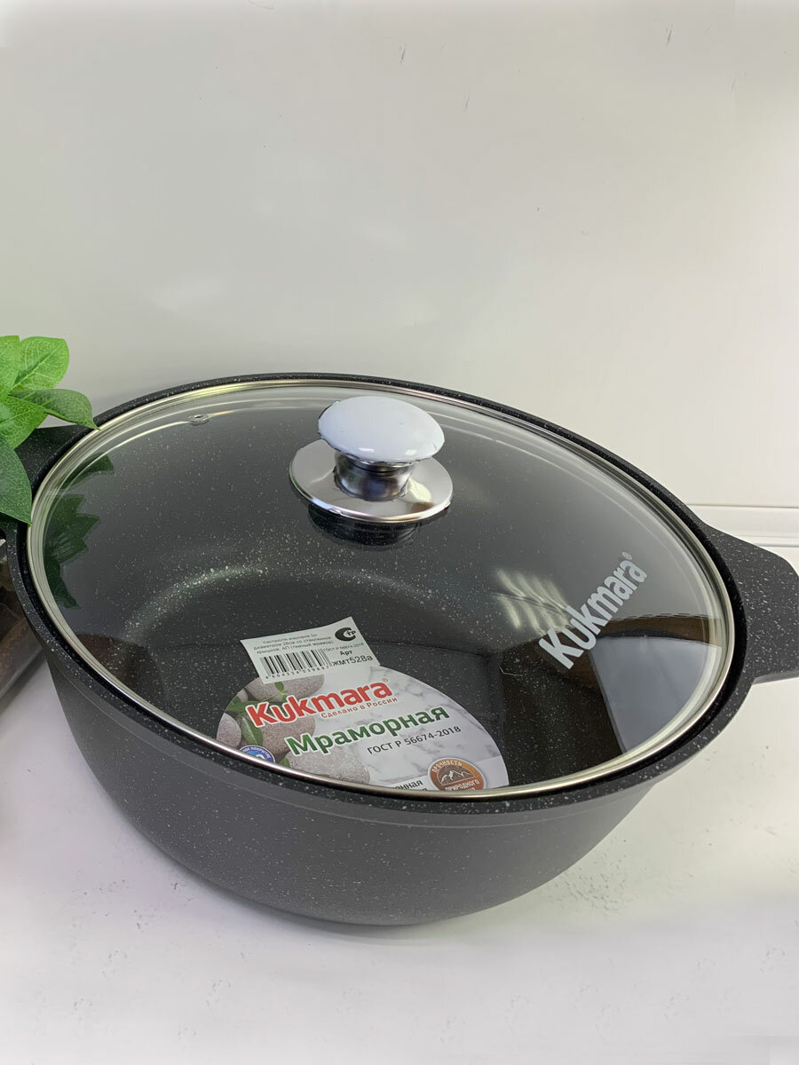 СохранитьКастрюля-жаровня KUKMARA жмт528а, темный мрамор, крышка стекло интересное: