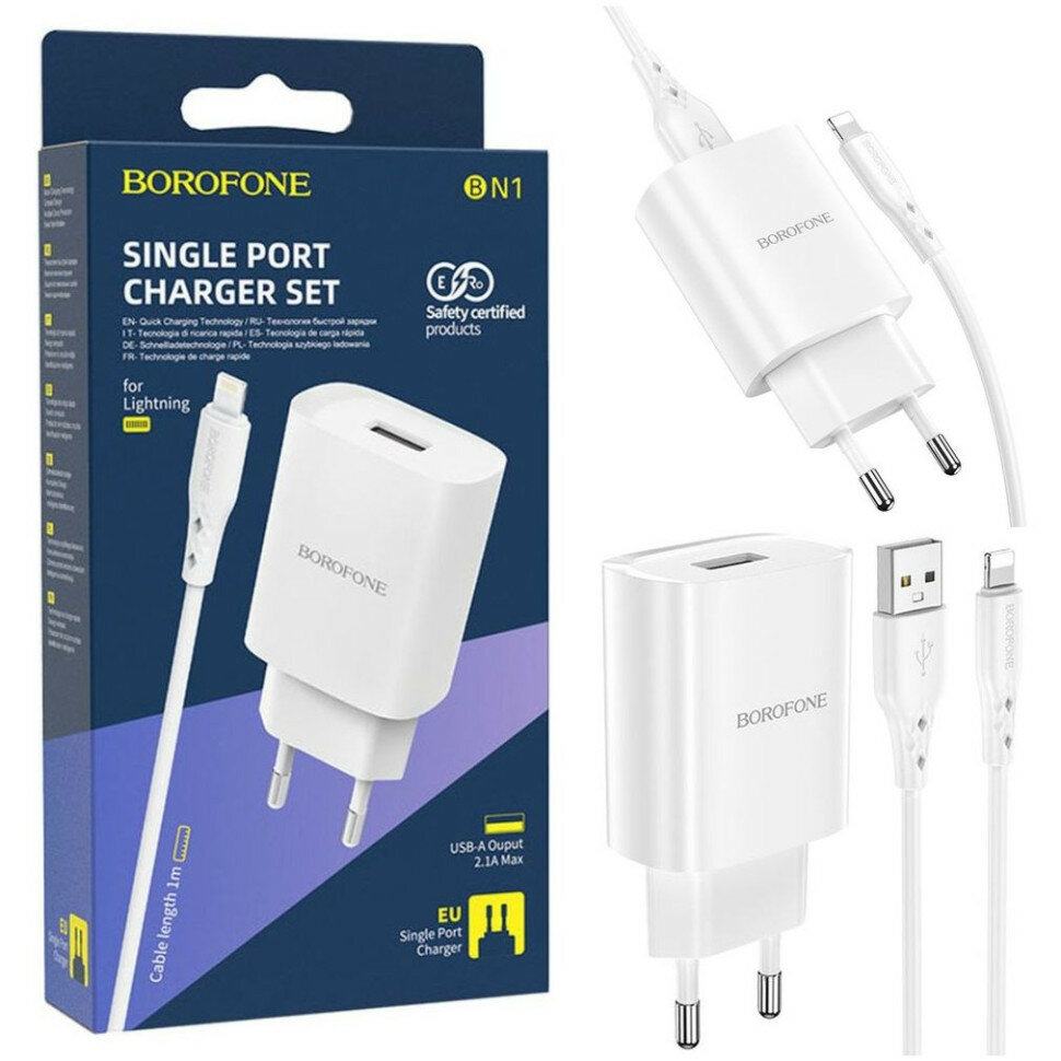 Купить Сетевое зарядное устройство BOROFONE BN1 Innovative 1xUSB с Кабелем USB - Lightning, 2.1A, 5W, белый