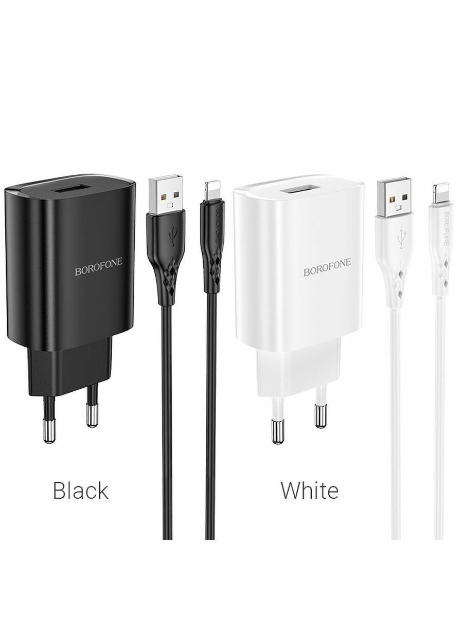 Сетевое зарядное устройство BOROFONE BN1 Innovative 1xUSB с Кабелем USB - Lightning, 2.1A, черный