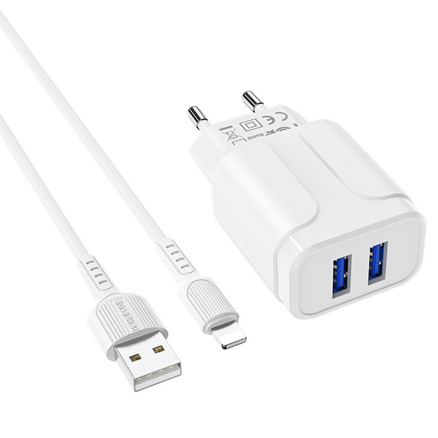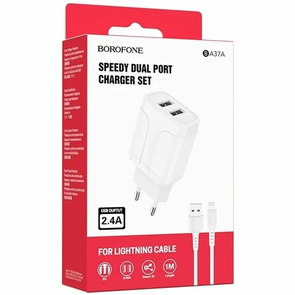 Сетевое зарядное устройство BOROFONE BA37A Speedy 2xUSB с Кабелем USB - Lightning, 2.4A, 10.8W, белый