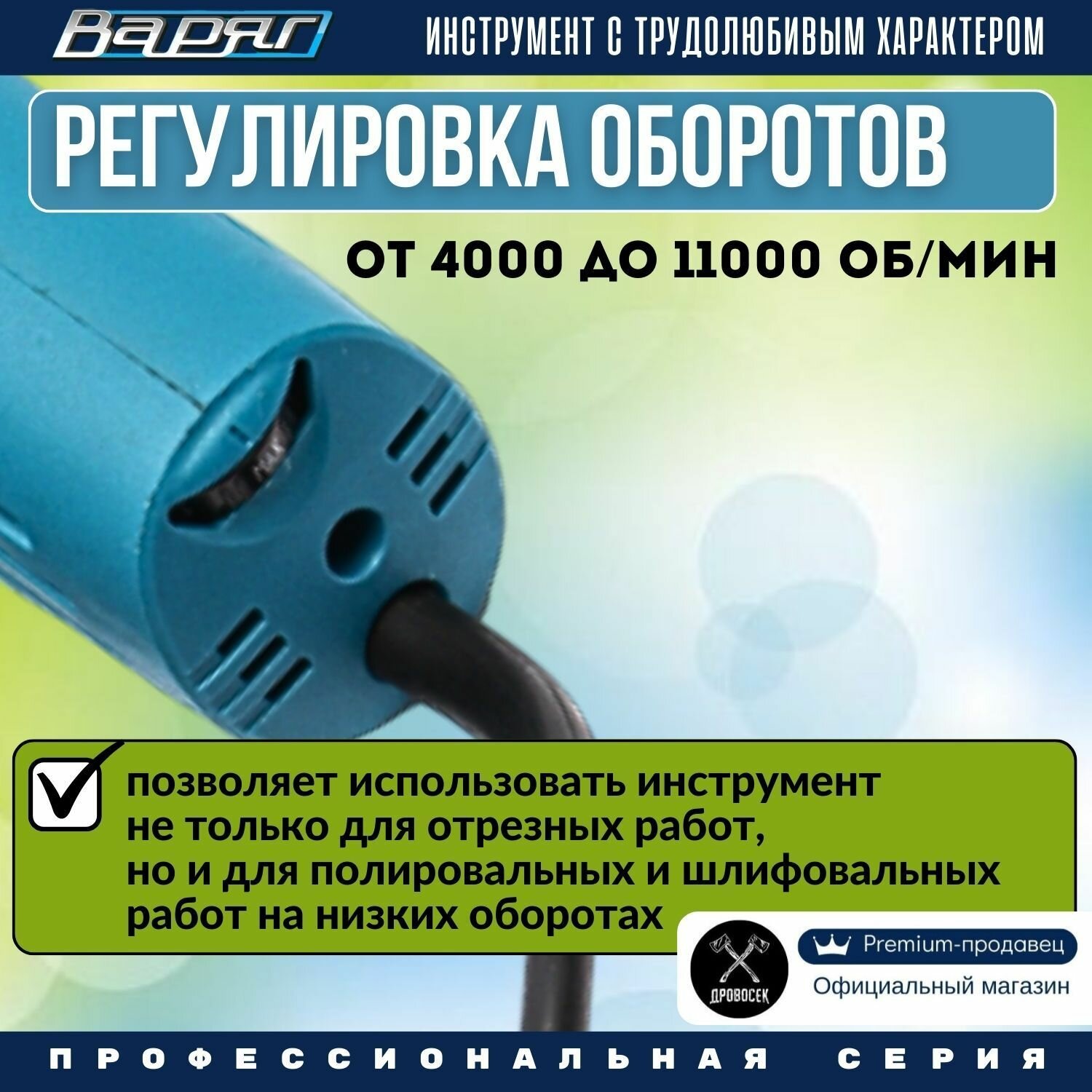 Профессиональная угловая шлифмашина Варяг УШМ-125/1000 РП, плавный пуск, регулировка