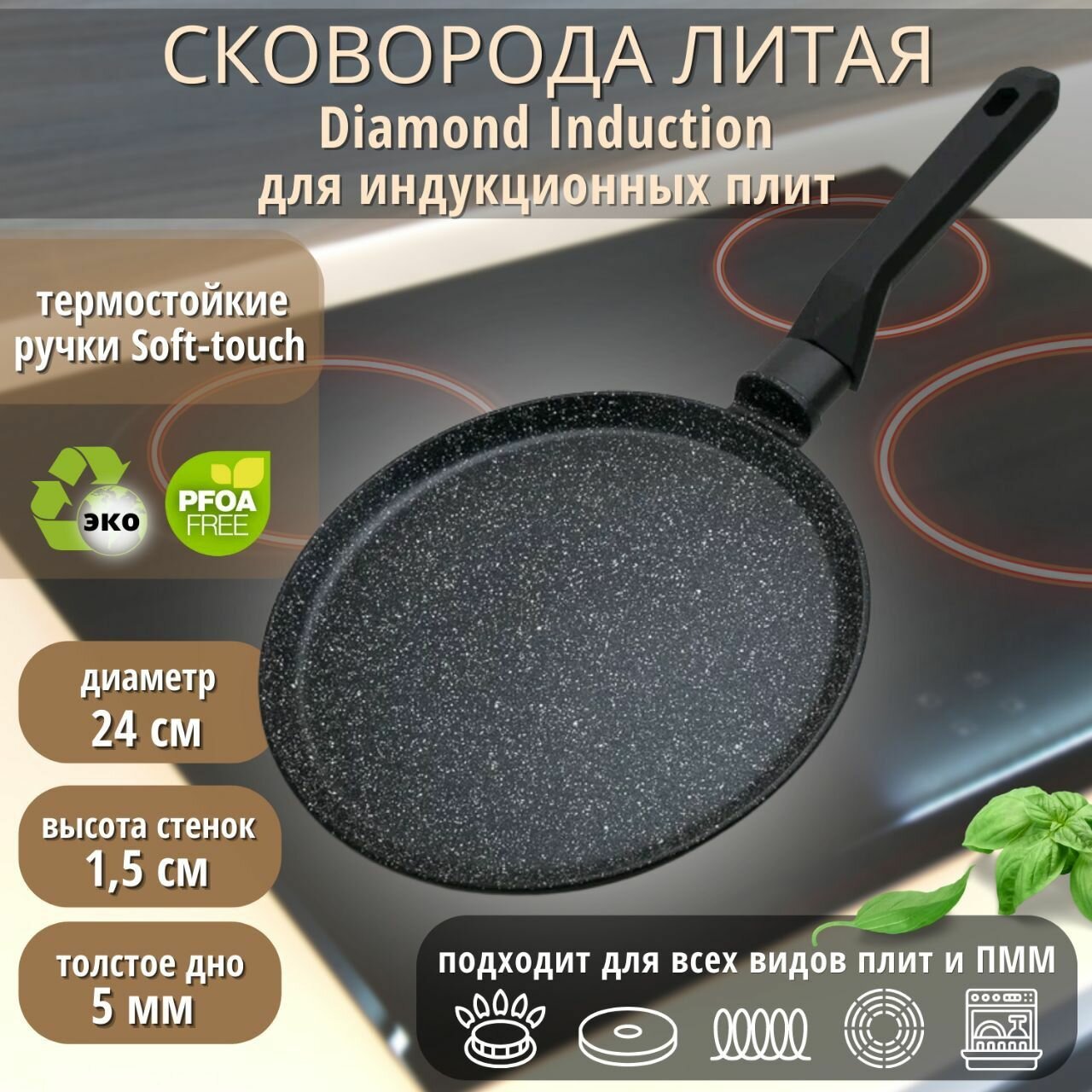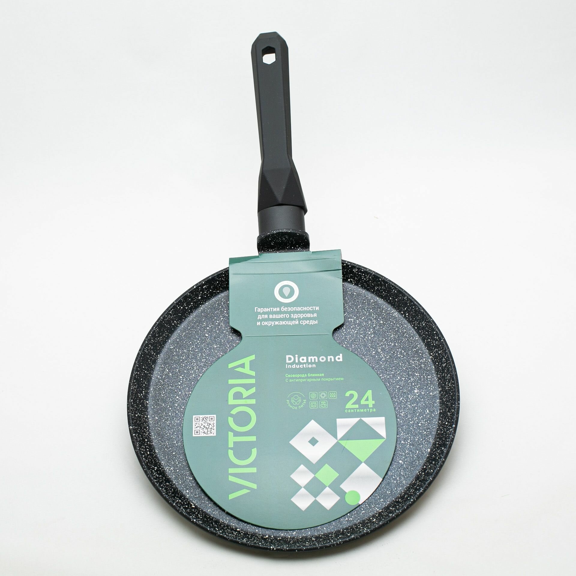 Сковорода блинная VICTORIA "DIAMOND INDUCTION", 24 см. черная