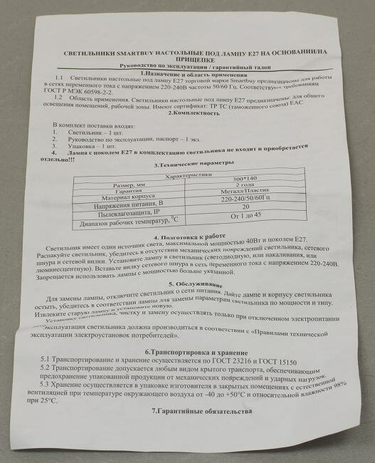 | Отзыв: | Шнур бракованный, лампочка шатается в цоколе |