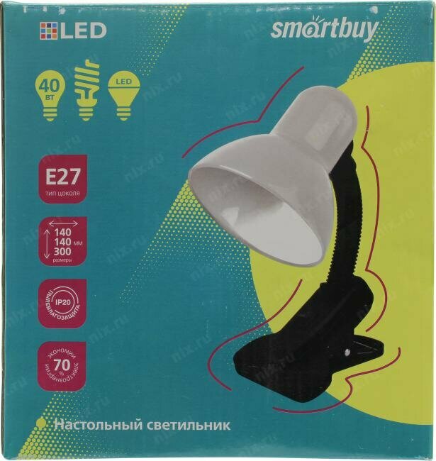 Настольный светильник Smartbuy Е27 с прищепкой белый, в пакете