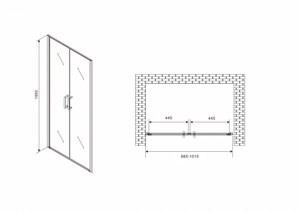 Душевая дверь в нишу Abber Sonnenstrand 100x195 AG04100BC стекло прозрачное, профиль черный