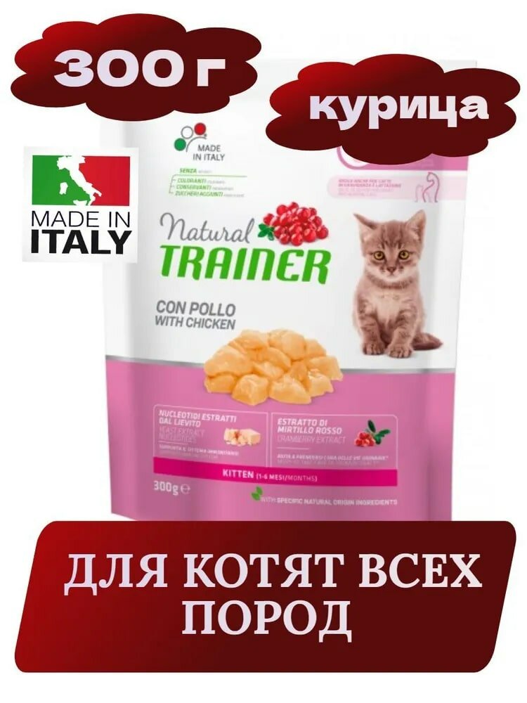 Trainer Natural 0,3кг Корм сухой для котят от 1 до 6 месяцев с мясом курицы, экстрактом из клюквы и нуклеотидами дрожжевого экстракта