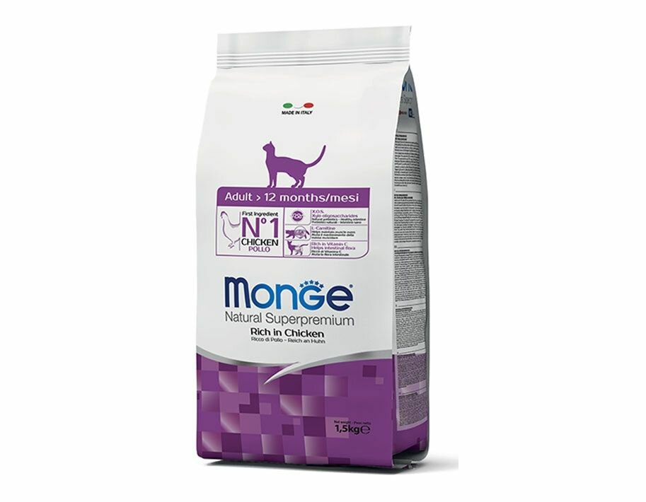 Купить Monge Adult Rich in Chicken Корм сухой для взрослых кошек 1,5кг