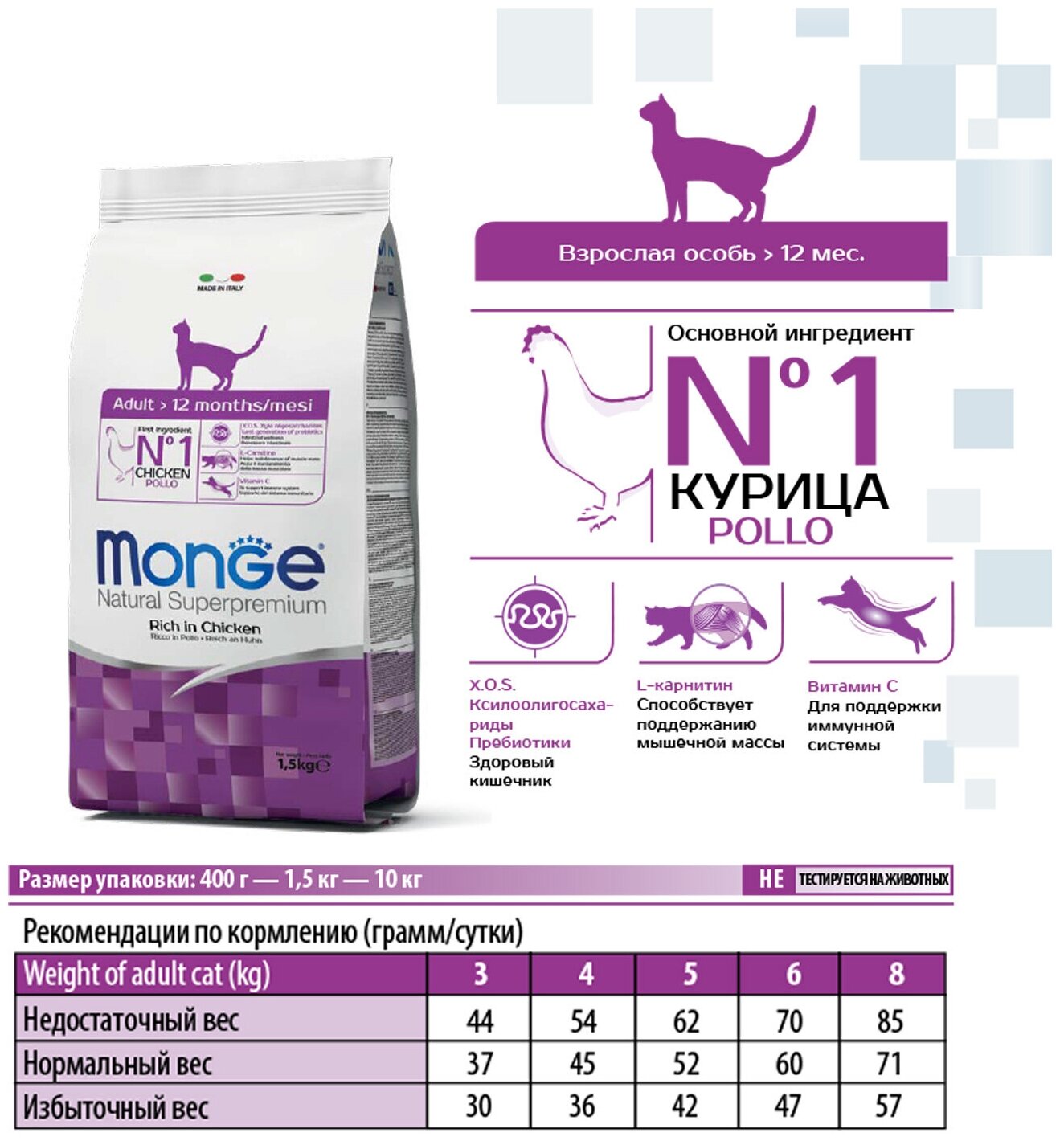 Monge Adult Rich in Chicken Корм сухой для взрослых кошек 1,5кг интересное: