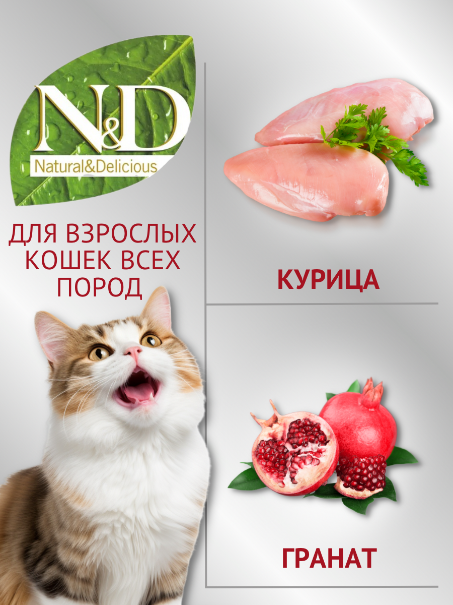 Farmina N&D Prime сухой корм для взрослых кошек, беззерновой, курица и гранат, 0,3 кг