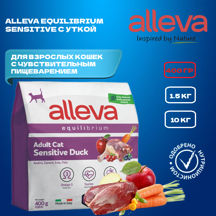 Купить Корм для взрослых кошек Аллева Эквилибриум Сенситив с уткой 0,4 кг