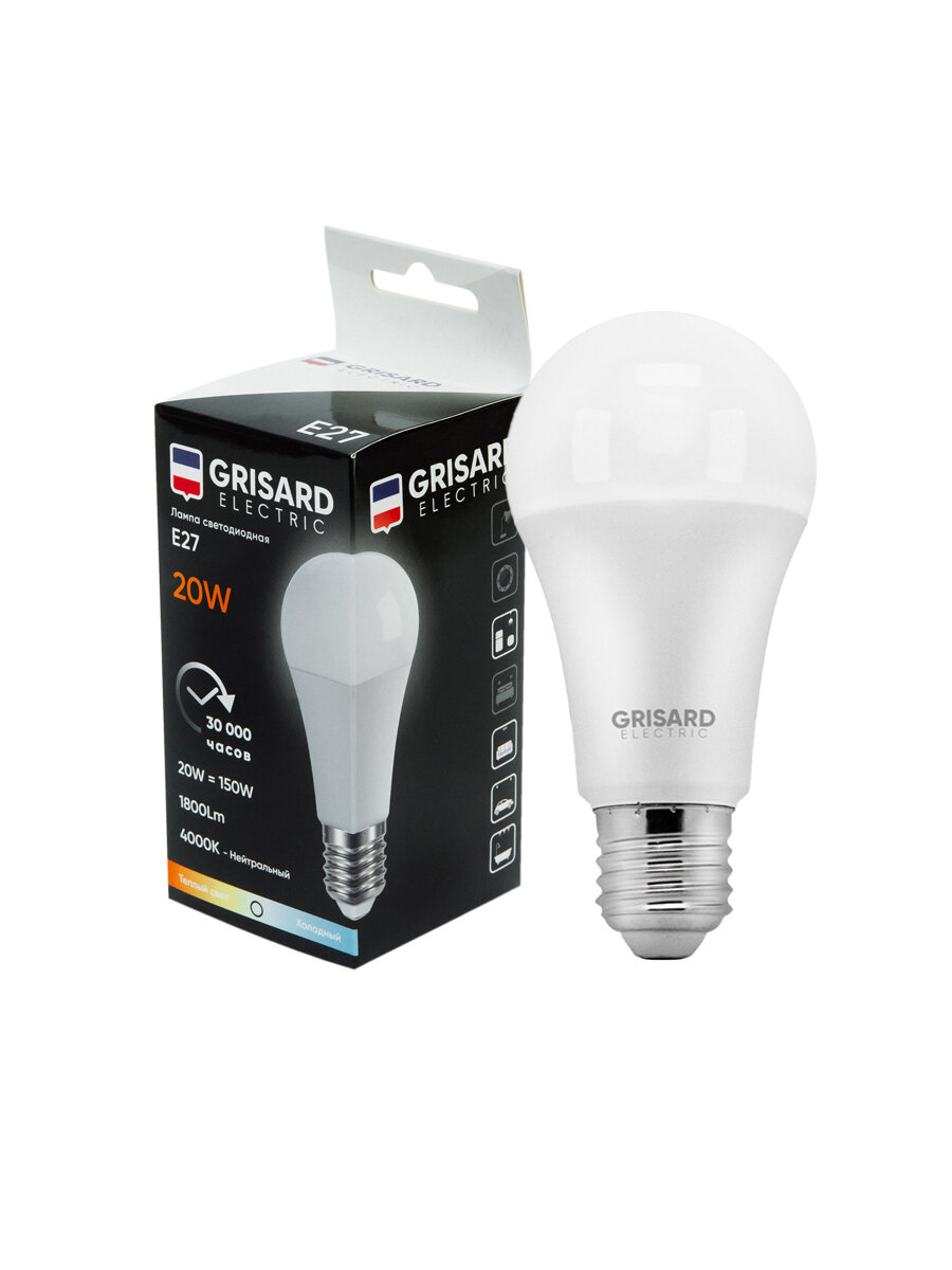 Лампа светодиодная GRISARD ELECTRIC шар A60 Е27 20Вт 4000К 220В 10шт