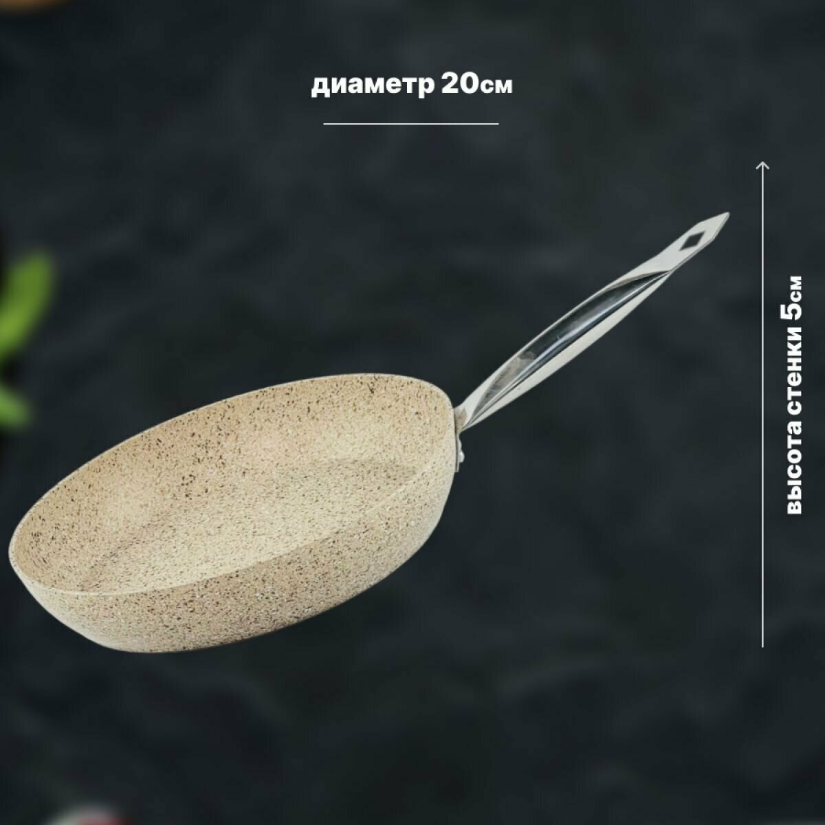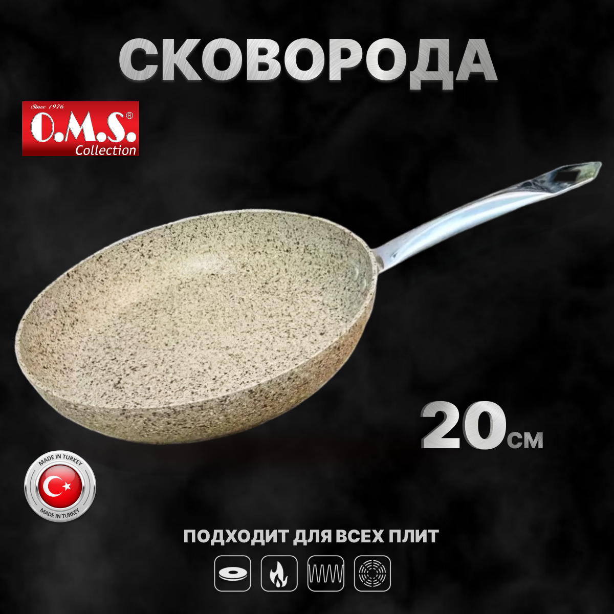 Сковорода. O.M.S. Антипригарное покрытие. 20 см. Бежевый.