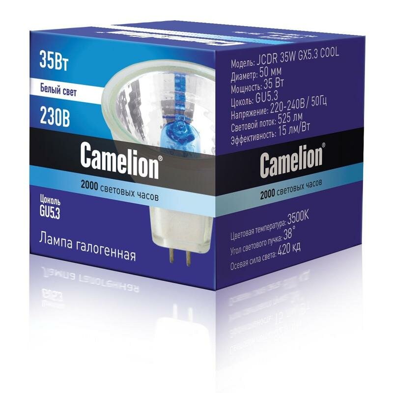 Лампа галогенная GU 5.3 11469 Camelion COOL JCDR 220В 35Вт 50мм для точечного светильника интересное: