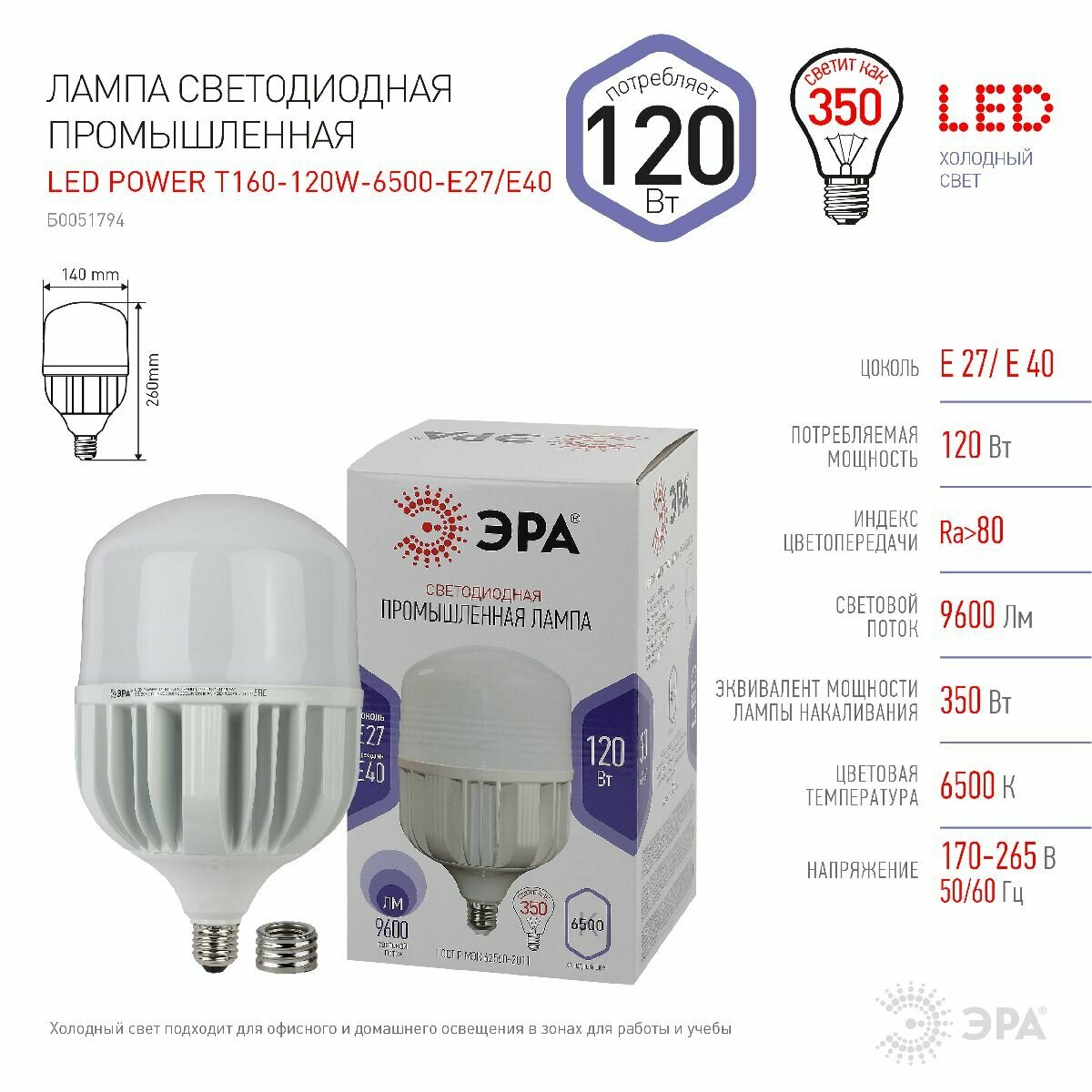 Лампа светодиодная ЭРА STD LED POWER T160-120W-6500-E27/E40 E27 / E40 120Вт колокол холодный дневной свет арт. Б0051794 (1 шт.)