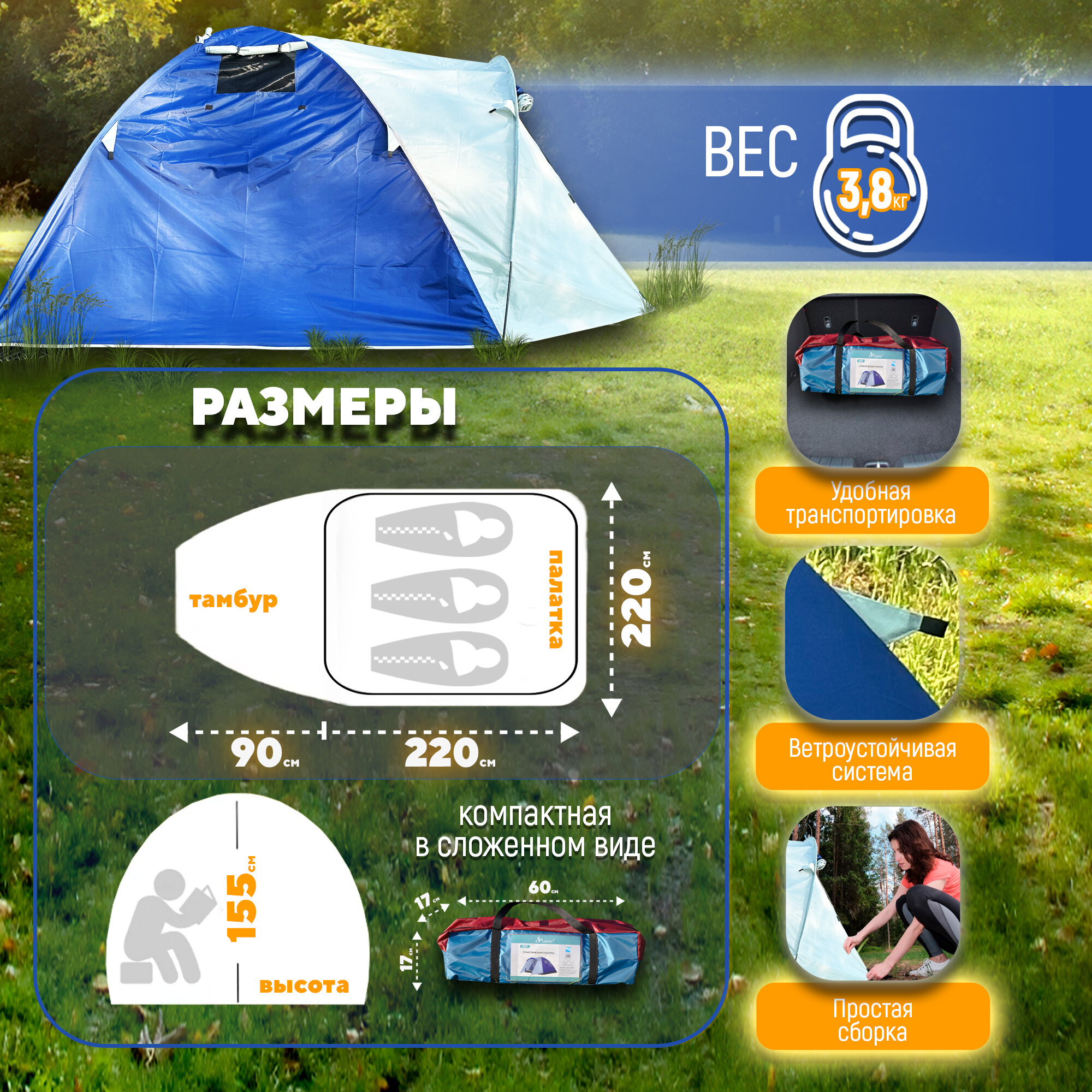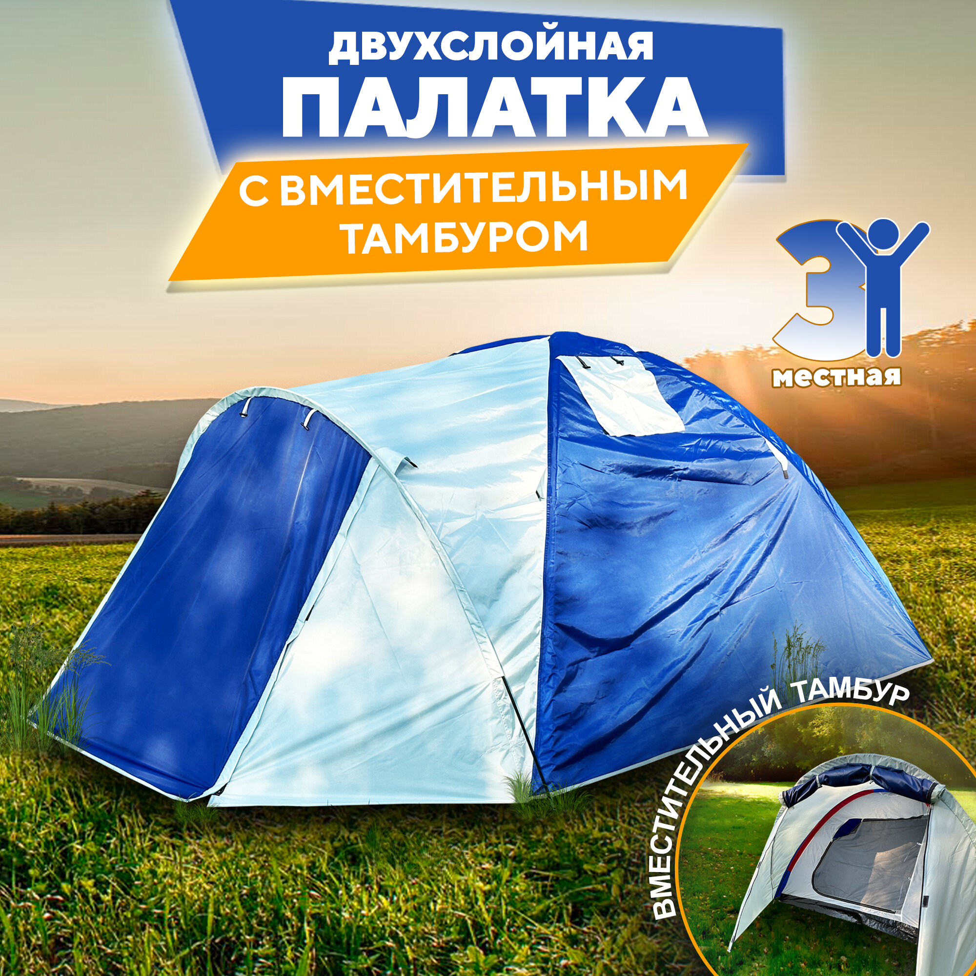 Палатка 3 местная с тамбуром Lanyu LY-1637 туристическая 310см х 220см высота 155см интересное:
