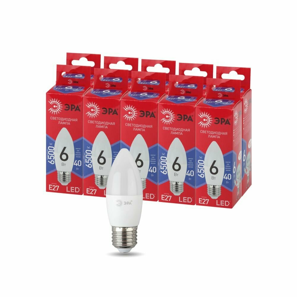 Набор светодиодных лампочек ЭРА LED B35-6W-865-E27 R 6500K свеча 6 Вт 10 штук