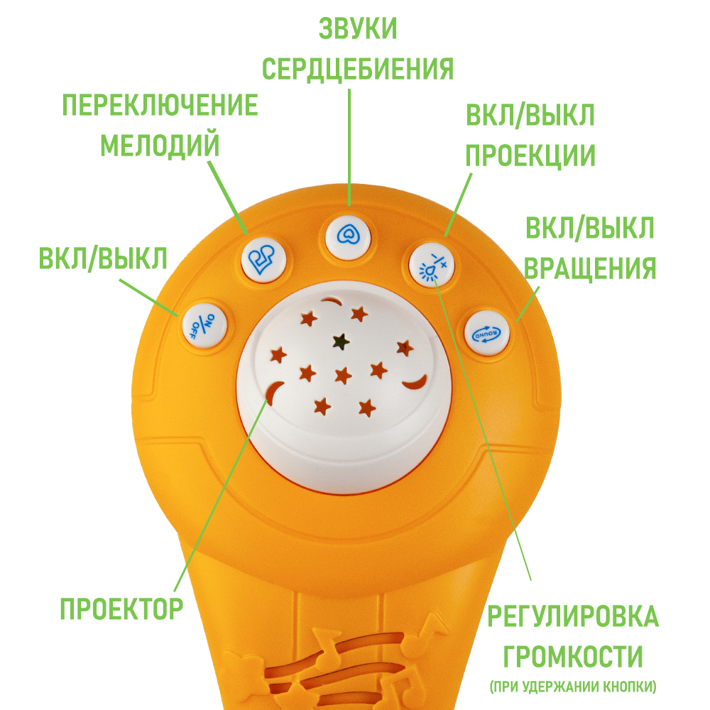 | Особенности | вращение игрушек / звуковые эффекты / ночник / проектор / световые эффекты / съемные игрушки |