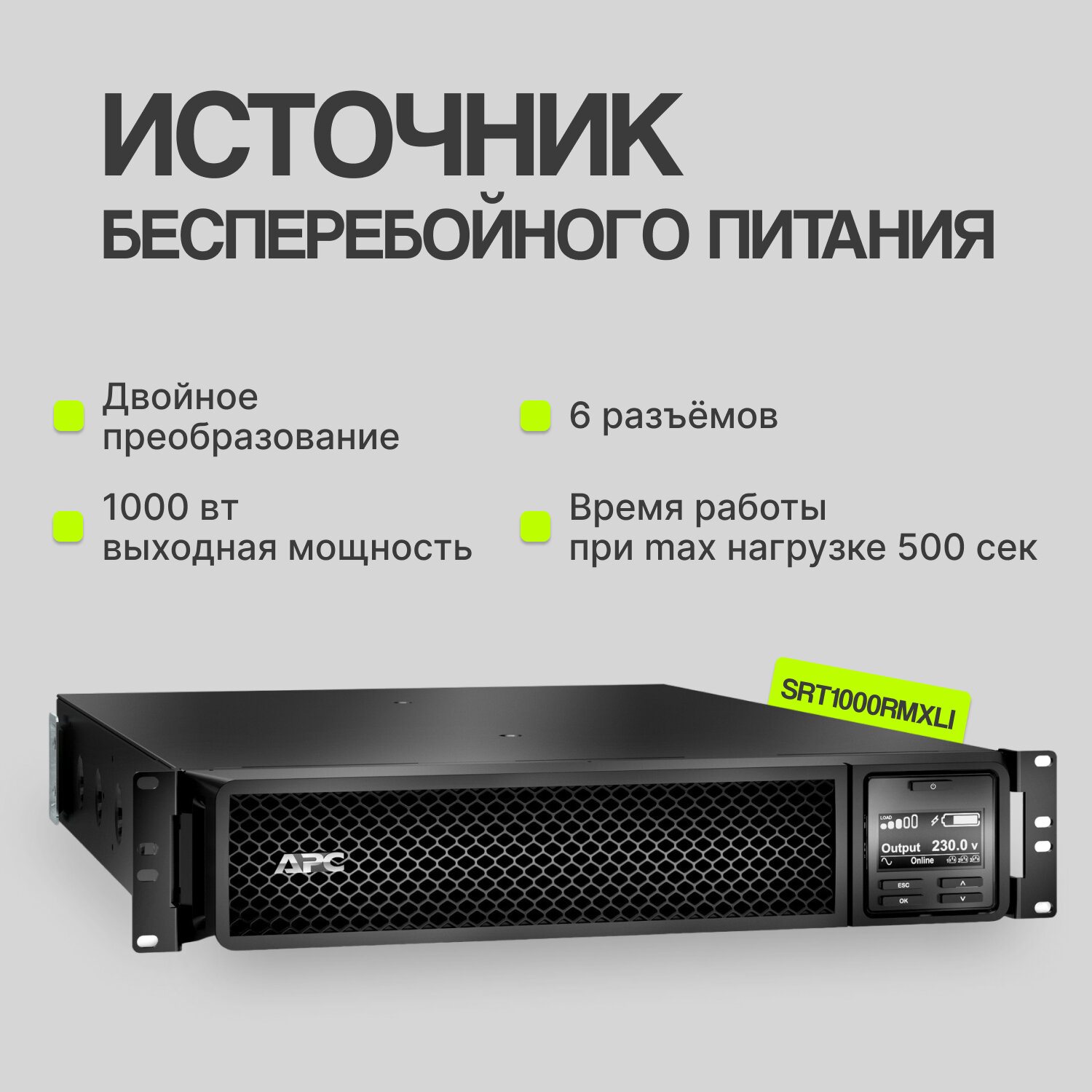APC Источник бесперебойного питания APC Smart-UPS SRT SRT1000RMXLI 1000Вт 1000ВА черный SRT1000RMXLI
