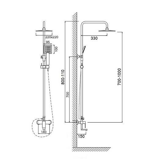| Форма верхнего душа | квадратная |