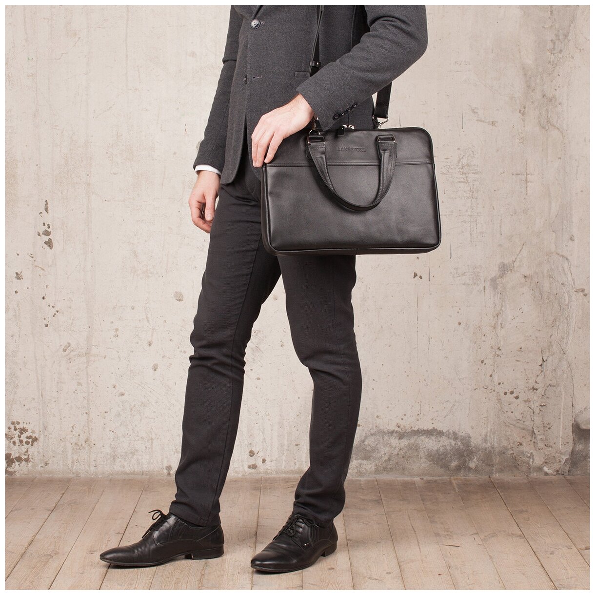 Деловая сумка для ноутбука Anson Black мужская кожаная черная интересное: