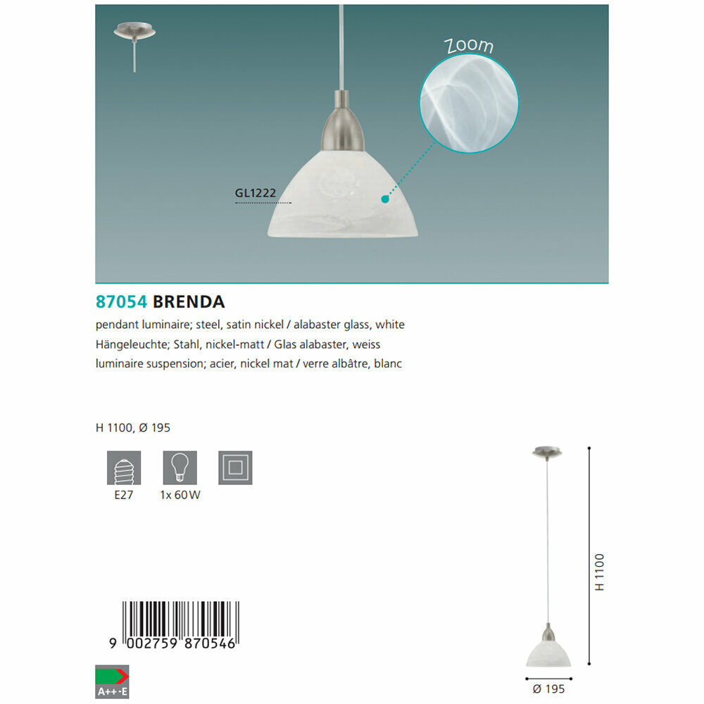 Купить Подвес BRENDA, 1х60W (E27), Ø195, H1100, сталь, никель мат./алебастр. стекло, белый