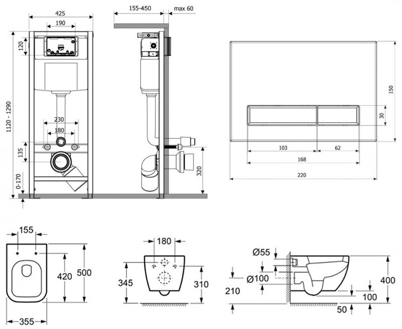Подвесной унитаз комплект 6 в 1 Lavinia Boho One 77050140: унитаз, сиденье микролифт, инсталляция, кнопка, шумоизоляция