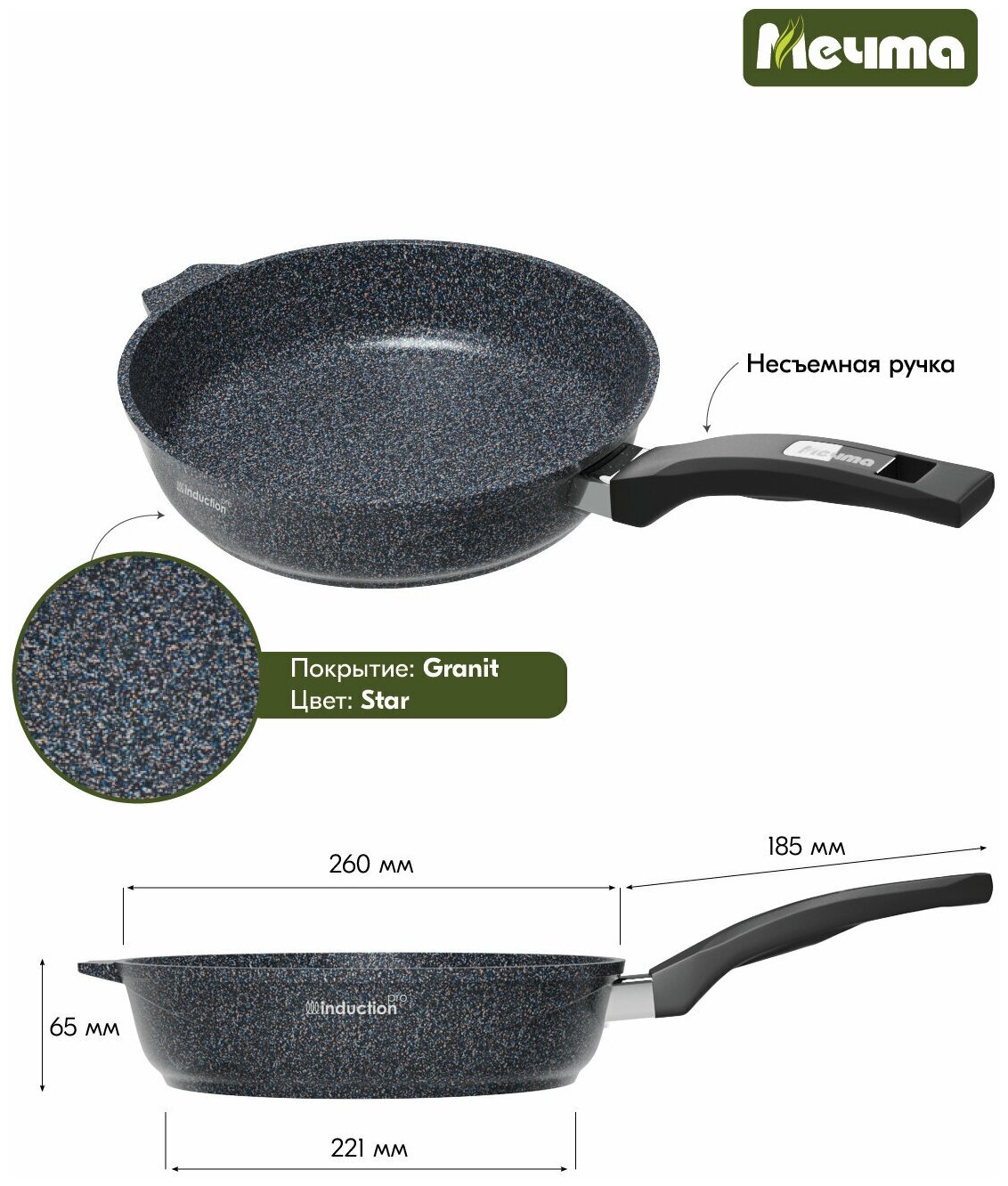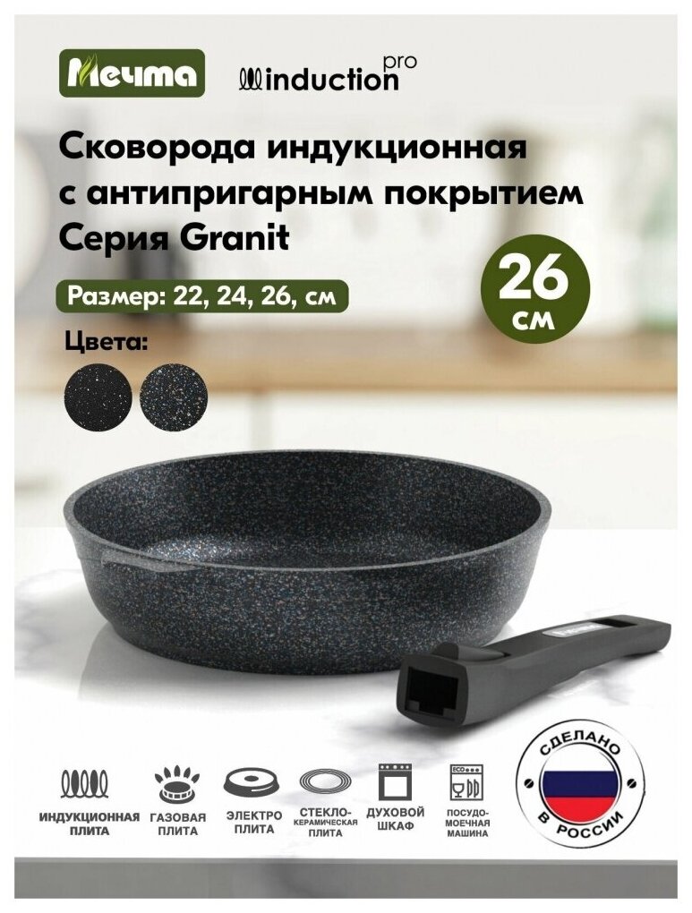 Сковорода Мечта индукционная 26см со съемной ручкой АП Гранит star Induction Pro 026803И
