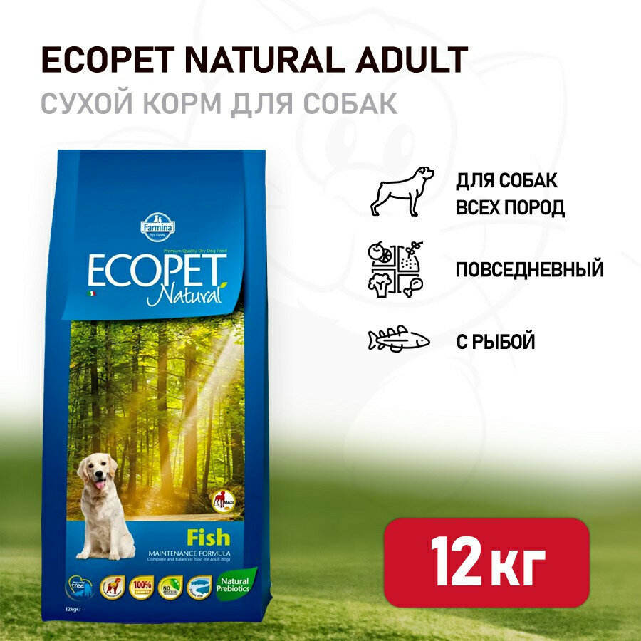 Сухой корм Farmina Ecopet Natural Fish, для взрослых собак, с рыбой, 12 кг
