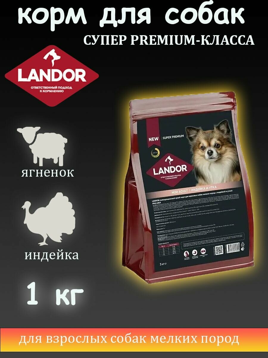 Сухой корм LANDOR 1кг для собак мелких пород c индейкой и ягненком