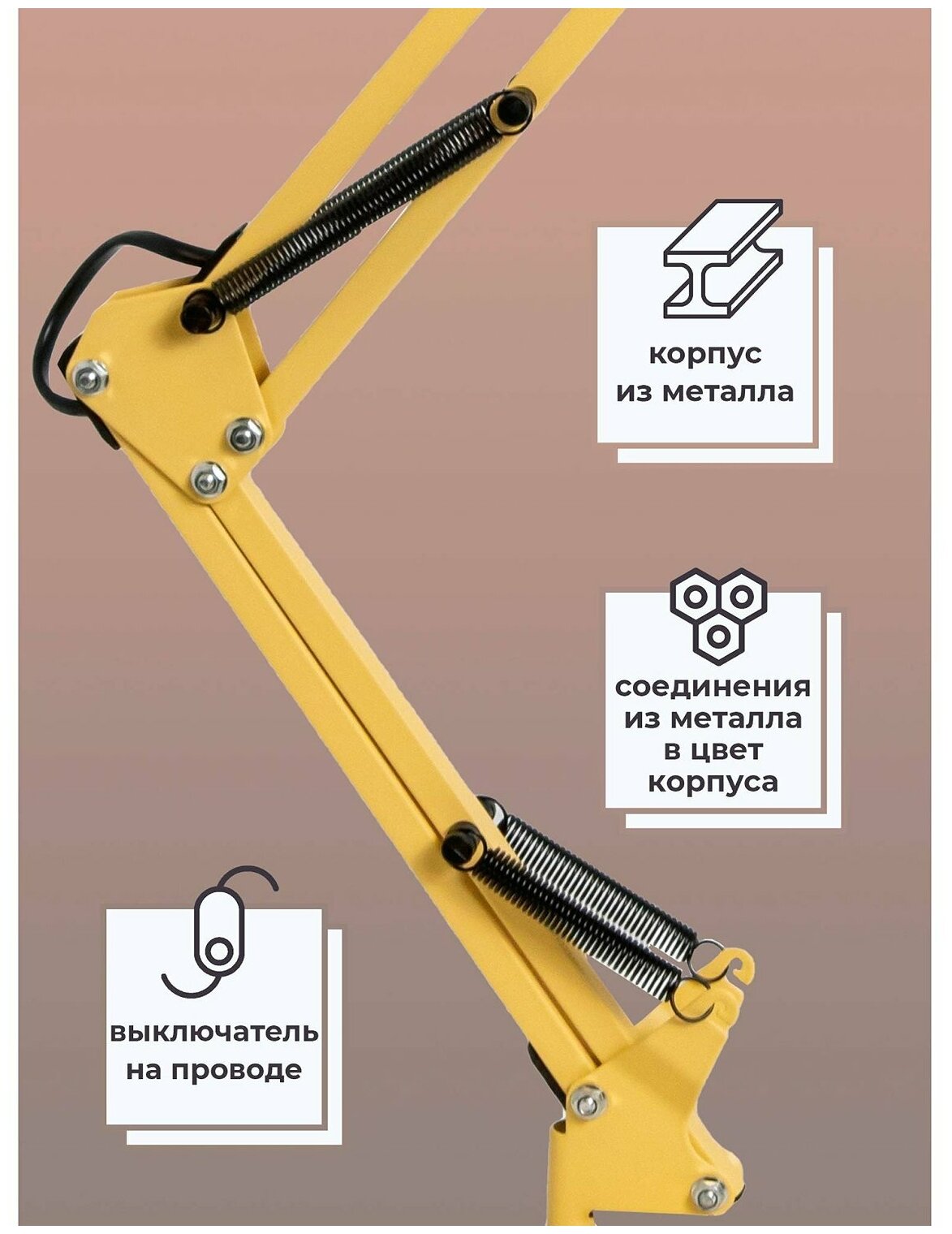 Настольный светильник Ultra LIGHT МТ2001 сменная лампа, Е27, 60 Вт Основание + струбцина, Желтая ваниль