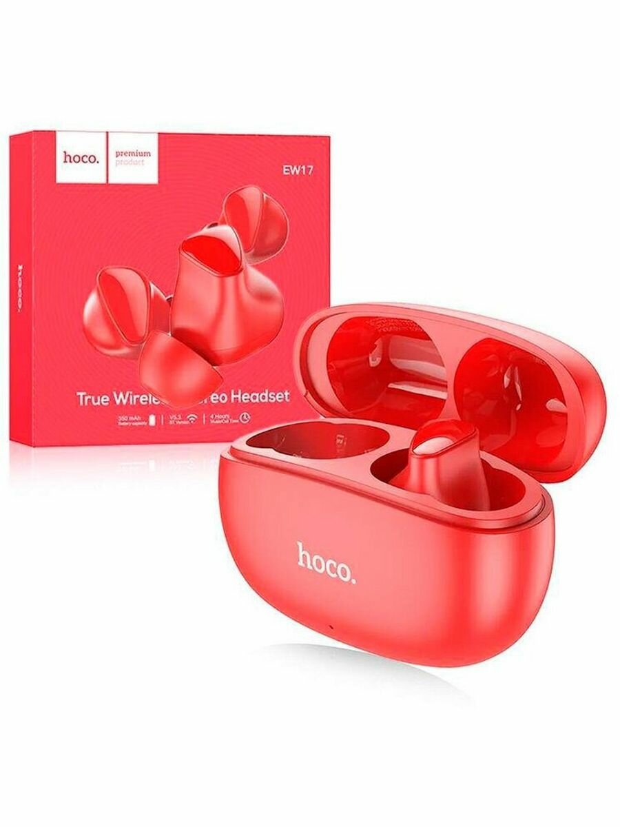 HOCO EW17 Беспроводные Bluetooth-наушники с кейсом, 350mAh, 4ч работы, красные