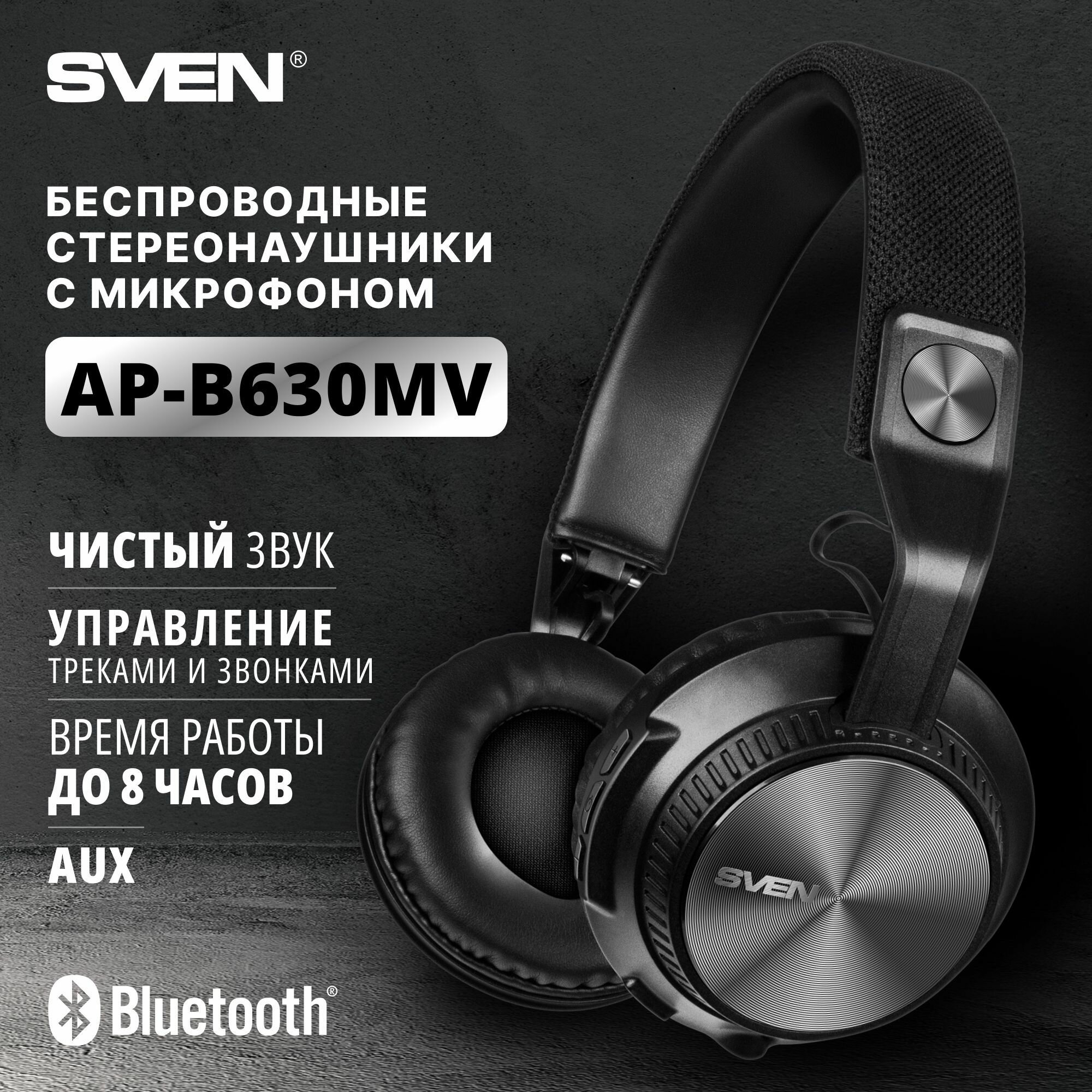Наушники с микрофоном Sven гарнитура, AP-B630MV, Bluetooth, беспроводные, черные интересное: