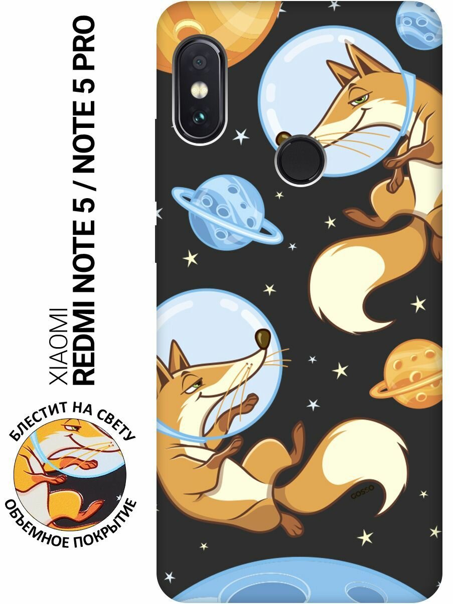 Купить Матовый Soft Touch силиконовый чехол на Xiaomi Redmi Note 5, Note 5 Pro, Сяоми Редми Ноут 5, Ноут 5 Про с 3D принтом "CosmoFoxes" черный