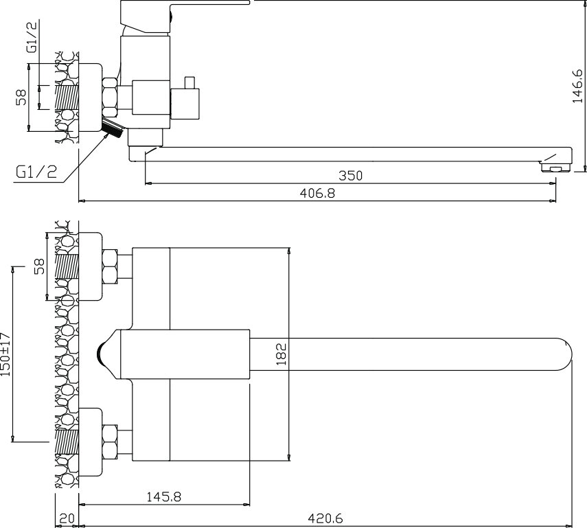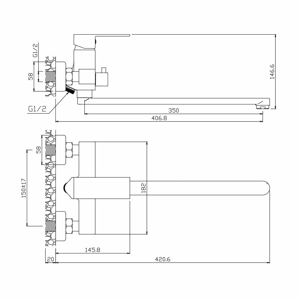 Смеситель для ванны с длинным изливом GRANADA 05221GN
