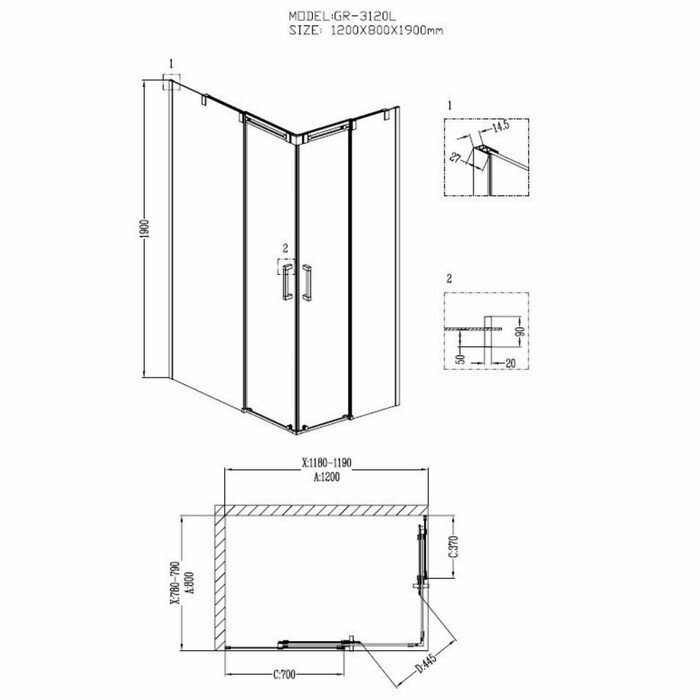 Душевое ограждение Grossman GR-3120L Galaxy 120*80*190 прямоугольник, двери раздвижные