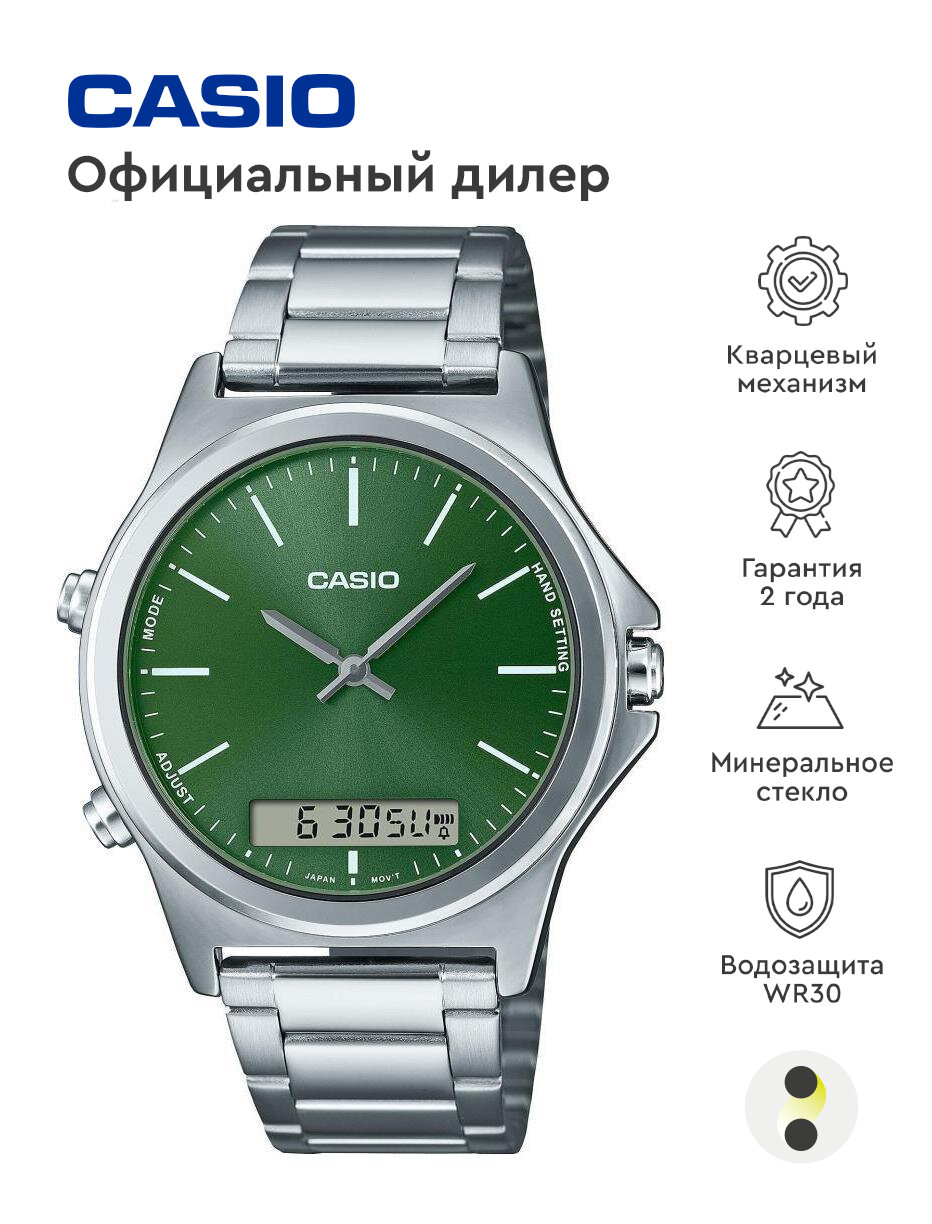 Наручные часы CASIO Collection MTP-VC01D-3E, зеленый, серебряный