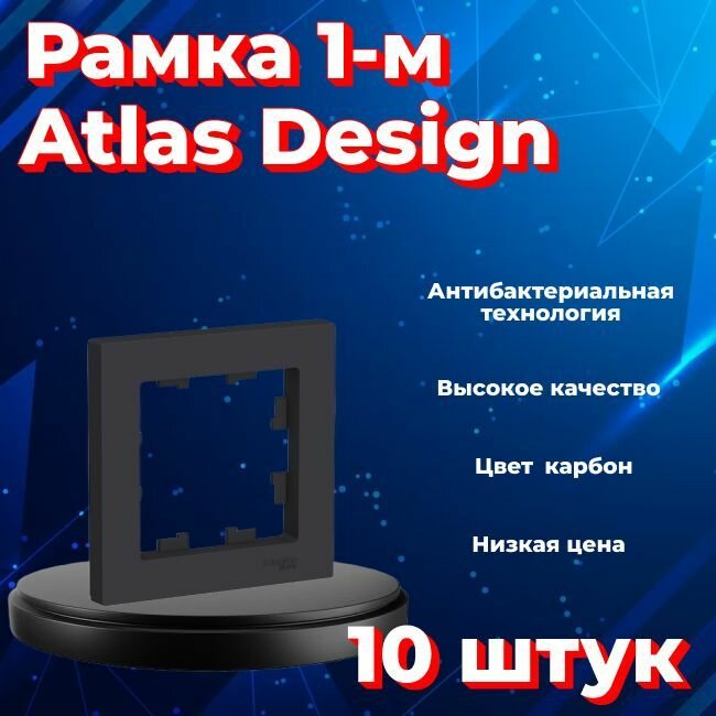 Купить Рамка 1-постовая для розеток и выключателей 10 шт Schneider Electric / Systeme Electric AtlasDesign карбон шнайдер ATN001001