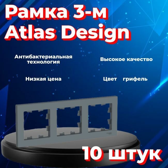 Рамка Systeme Electric Atlas Design тройная для розеток и выключателей грифель - 1 шт.