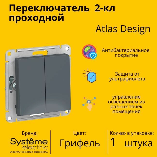 СохранитьПереключатель 2-клавишный 10А, грифель ATLAS DESIGN интересное: