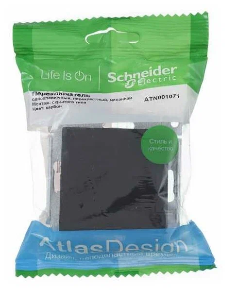 Переключатель Schneider Electric Atlas Design ATN001071 одноклавишный перекрестный скрытая установка карбон