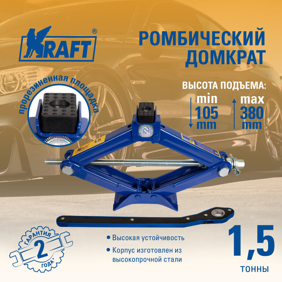 Домкрат ромбический 1,5 т. Kraft с трещоточной рукояткой 105-380 мм