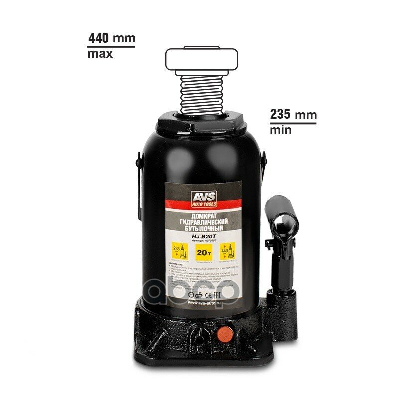 Домкрат гидравлический AVS HJ-B20T 20т, 235-440мм.