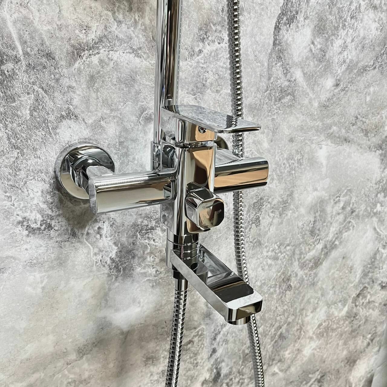 Кран, стандартный душ и высокий душ Выглядит очень стильно |