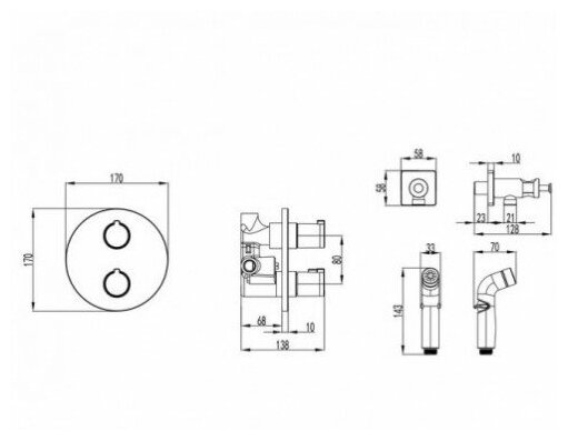 Термостат Lemark Yeti LM7819C с гигиеническим душем, встраиваемый хром