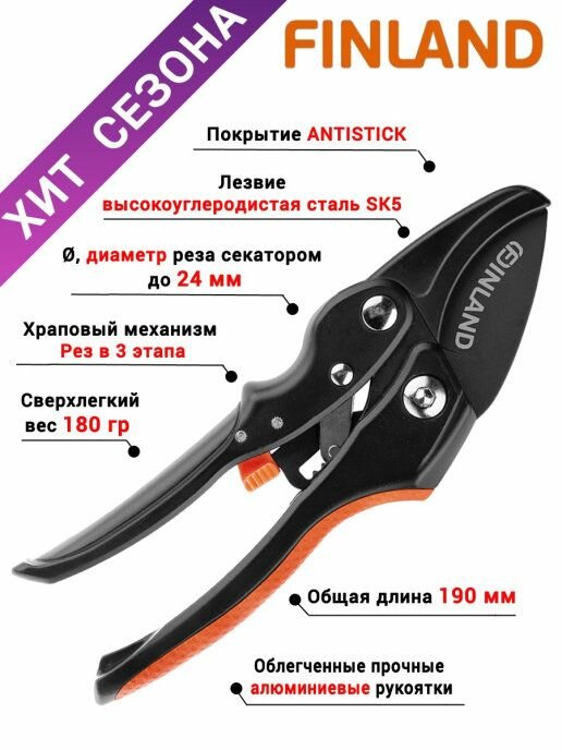 Секатор FINLAND 1820 контактный с храповым механизмом