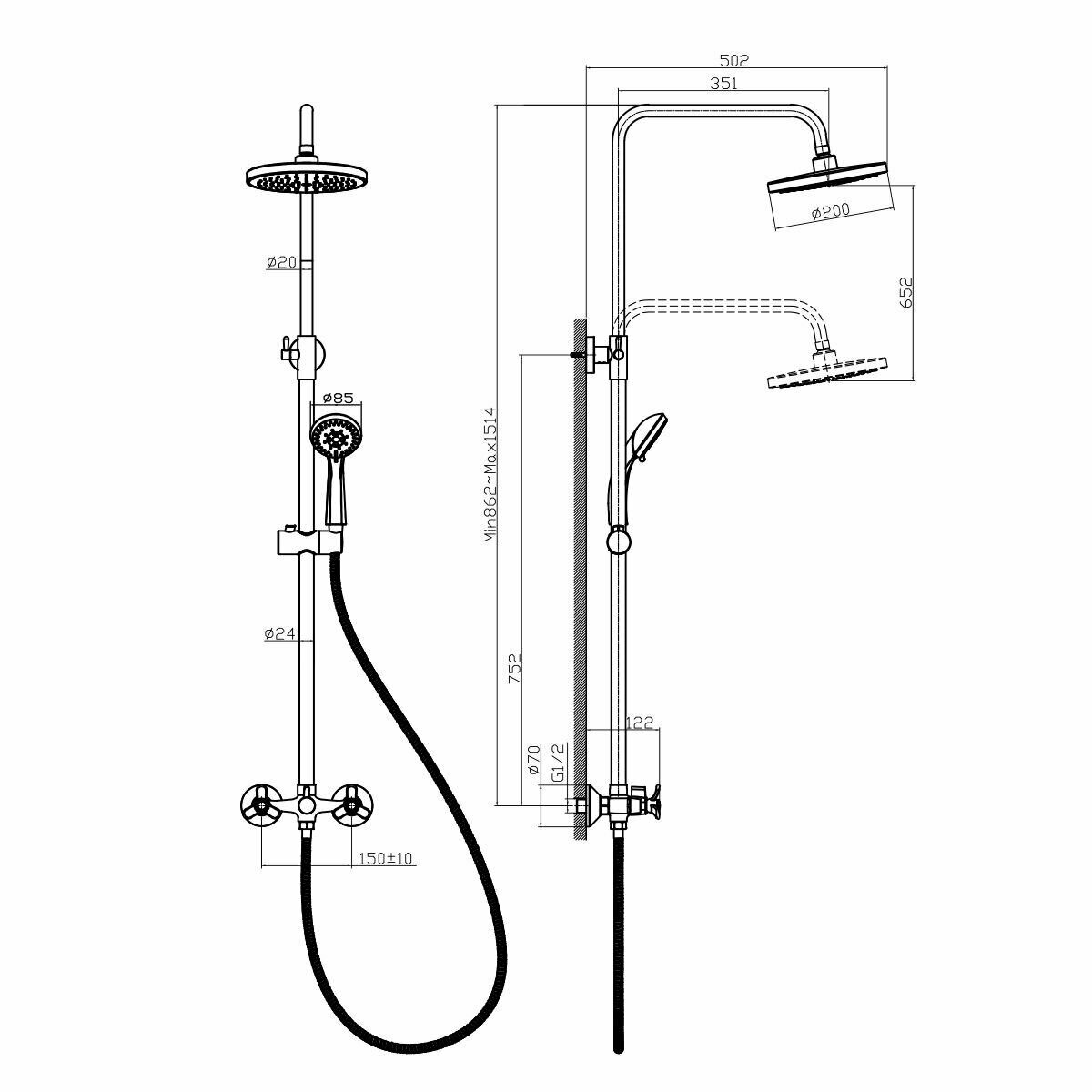 | Особенности | S-образные эксцентрики / держатель душевой лейки / регулируемый верхний душ |