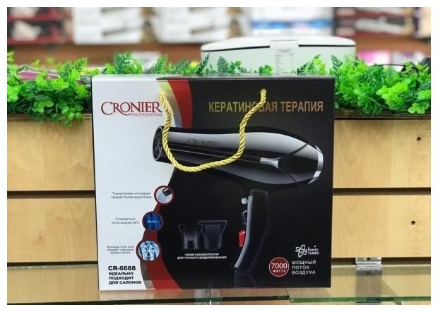 Профессиональный фен для волос Cronier CR-6688, 7000 Вт, с насадками и ионизацией, черный